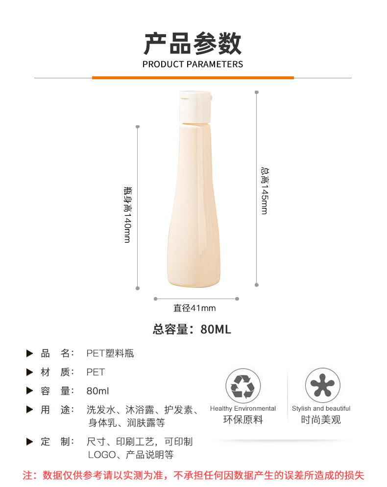 • PET塑料分裝瓶80ml旅行套裝瓶水乳瓶試用裝小樣瓶護膚品包材,適用洗發(fā)水、沐浴露、護發(fā)素、身體乳、潤膚露等。