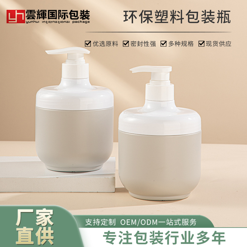 定制PE廣口按壓瓶圓柱形磨砂膏面膜罐550ml帶泵頭洗發(fā)水沐浴露瓶